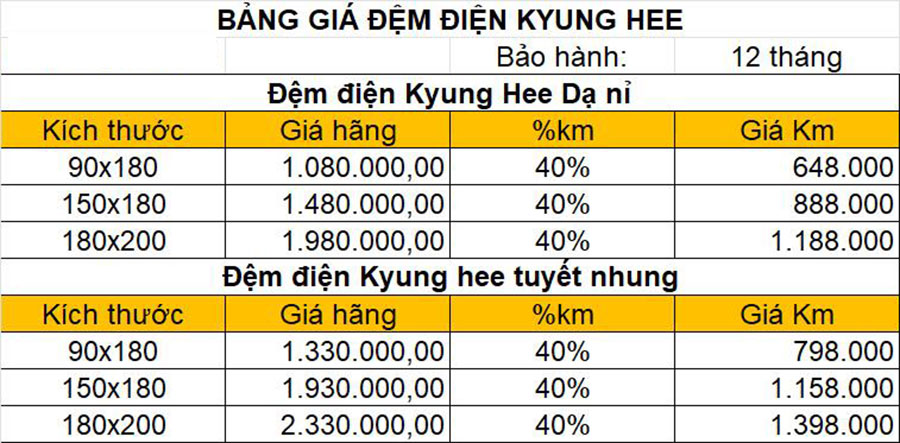 Nhà phân phối đệm điện Kyung Hee chính hãng